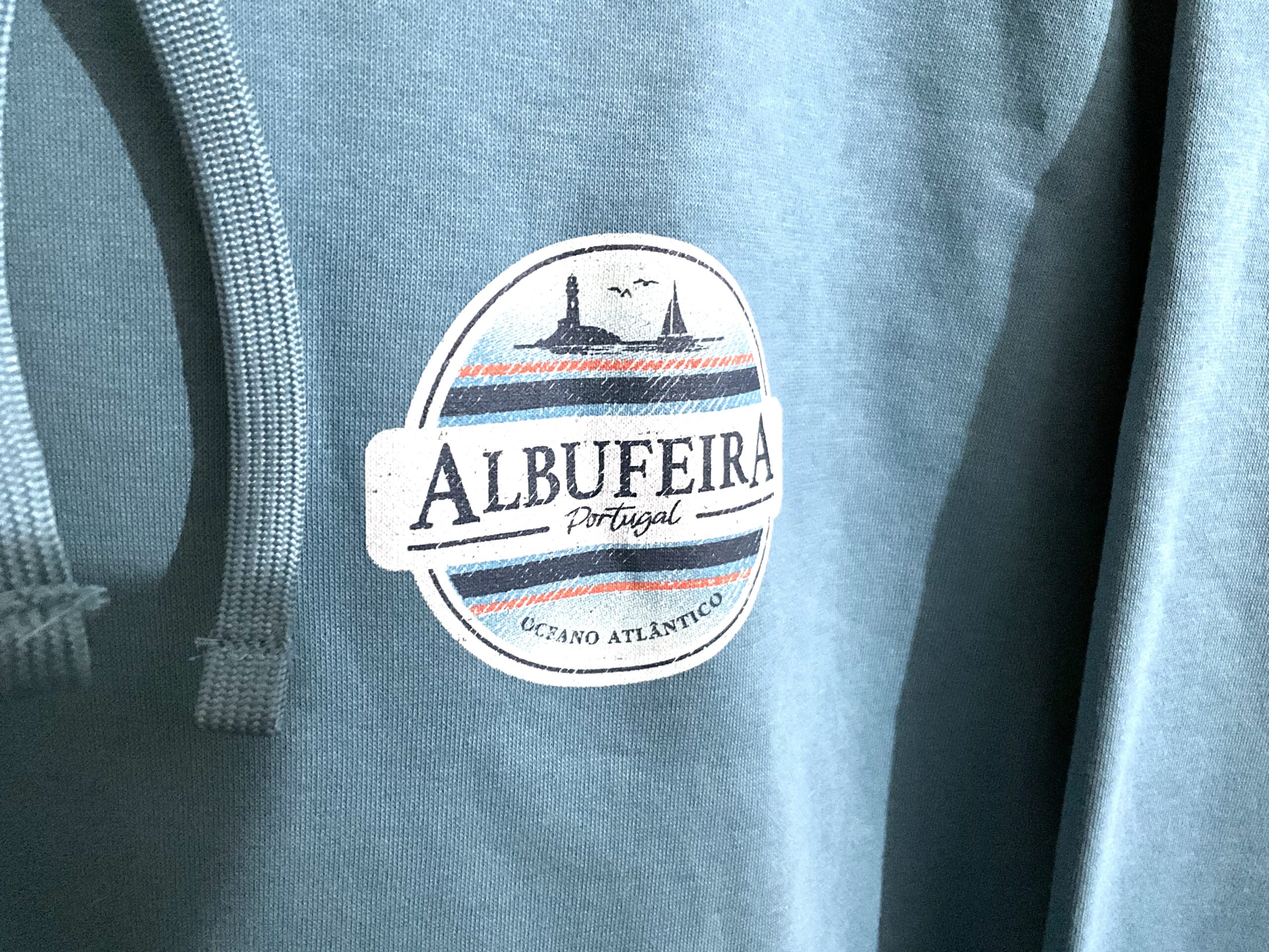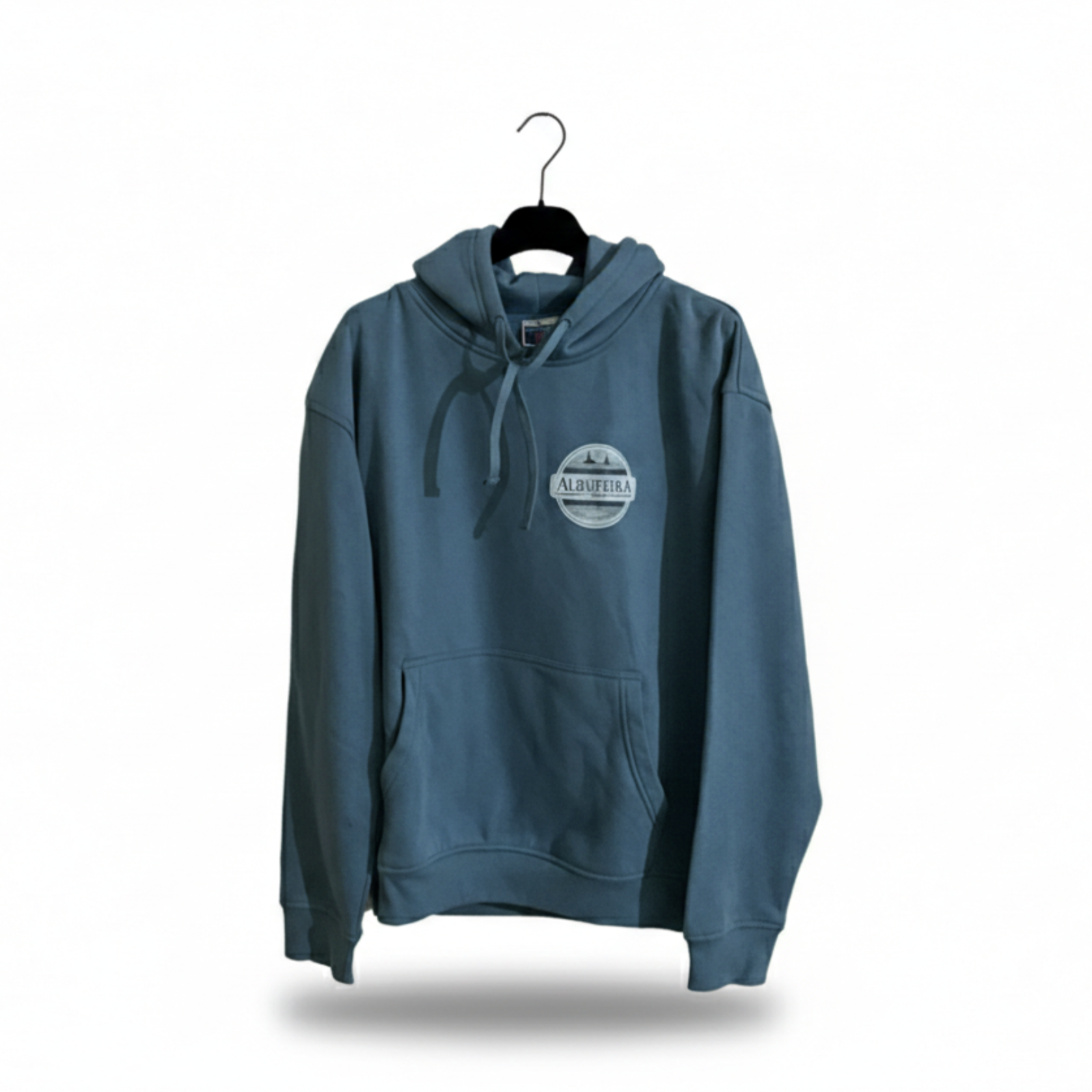 Sweatshirt de estilo casual e com capuz, que apresenta a inscrição “Albufeira” em estampa no peito. O corte e solto, confortável e quente. Tecido cardado.
